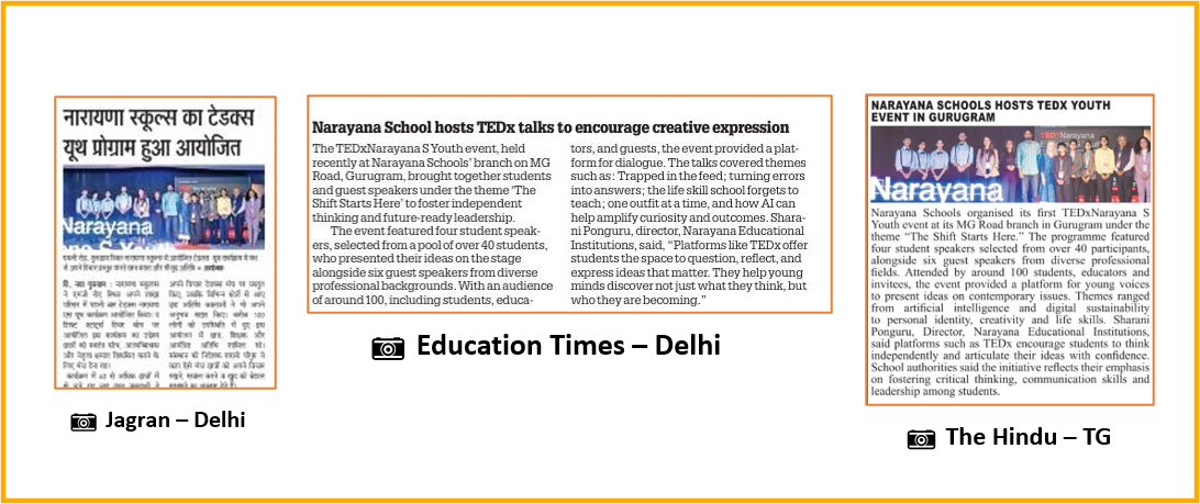 The initiative reflects Narayana Schools’ focus on nurturing confident communicators and future-ready leaders through experiential learning platforms. The event also received wide media coverage across leading national and regional publications including Education Times (Print), The Hindu (Print), India Education Diary (Digital), Brainfeed (Digital), MSN (Digital), Jagran (Print), Business News Week, Media Bulletins, and JK Monitor (Digital), highlighting Narayana schools focus on thought leadership and student engagement.