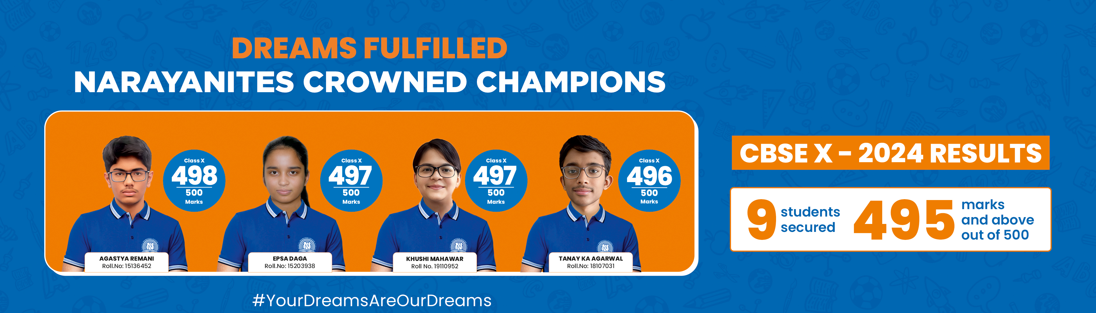 At Narayana, we take pride in our 47+ years legacy of excellence. Our approach, refined over the last 4+ decades, has led us to a process driven system which is in line with today's needs and requirements to ensure overall development of students. Through this system, we foster an environment where excellence thrives to ensure dreams turn into reality, as Your Dreams Are Our Dreams.